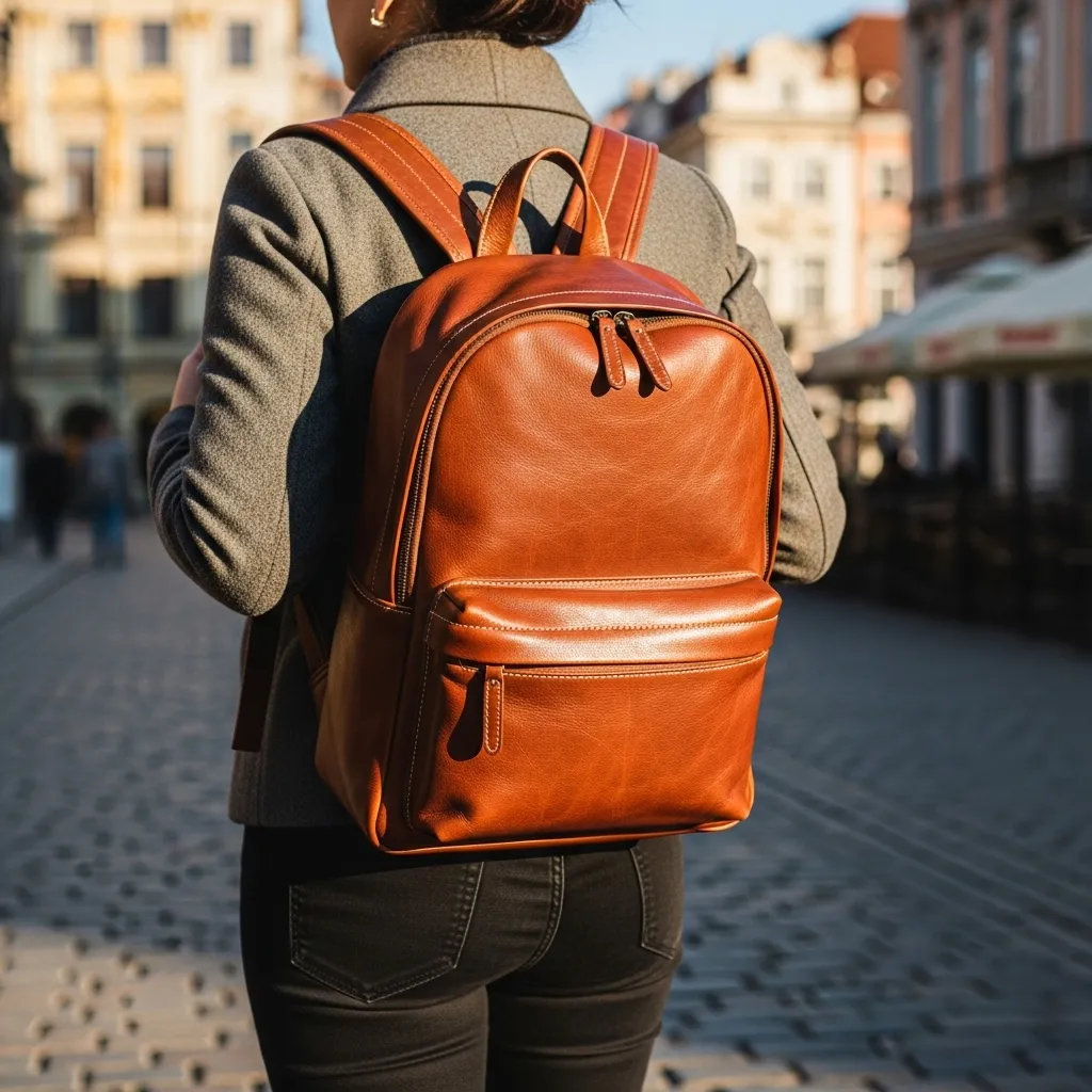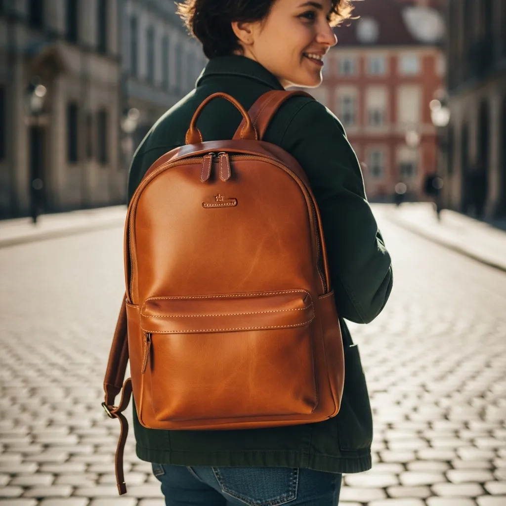 This backpack has that classic look people always notice. The leather starts off smooth and slowly develops a rich patina as you use it. The pockets inside are simple and practical, and the straps feel padded without being bulky. It works well for work, gym runs, or quick weekend trips. It holds its shape and never looks out of place no matter what you pair it with.